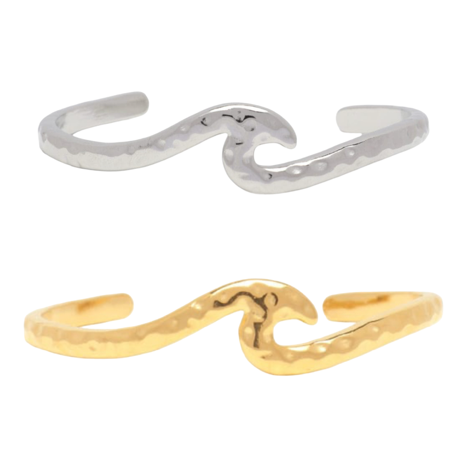 BANGLE WATERPROOF HAMMERED WAVE IN GOLD OR SILVER