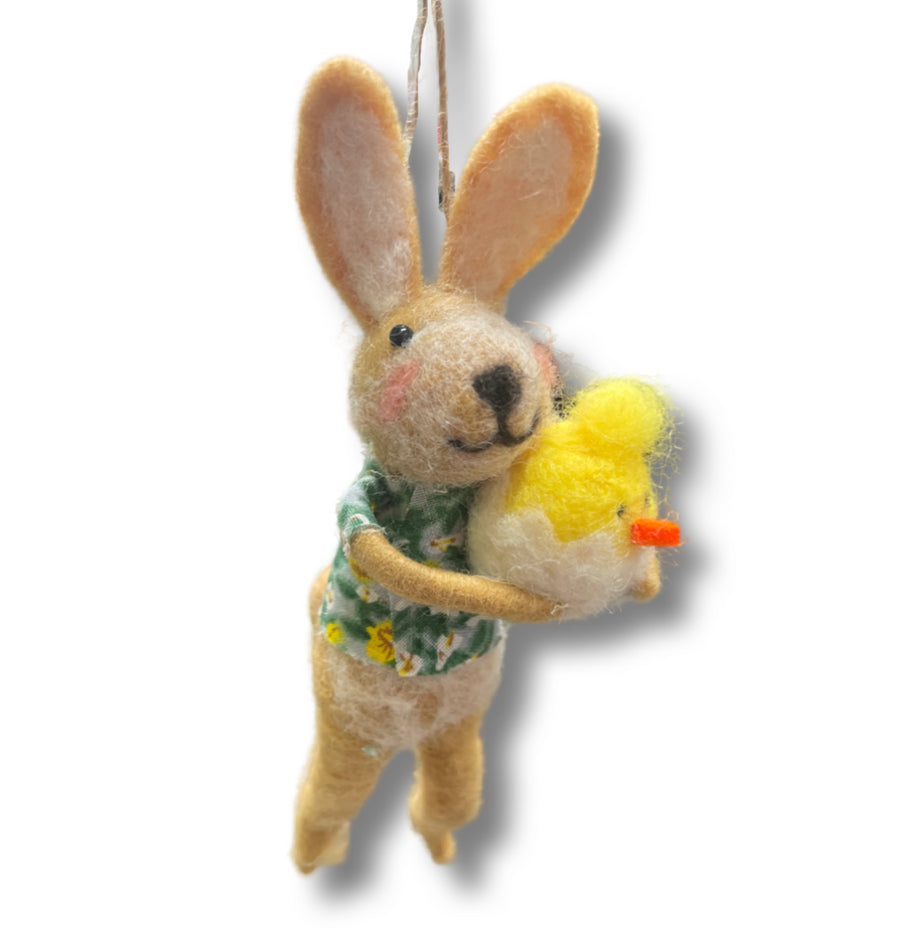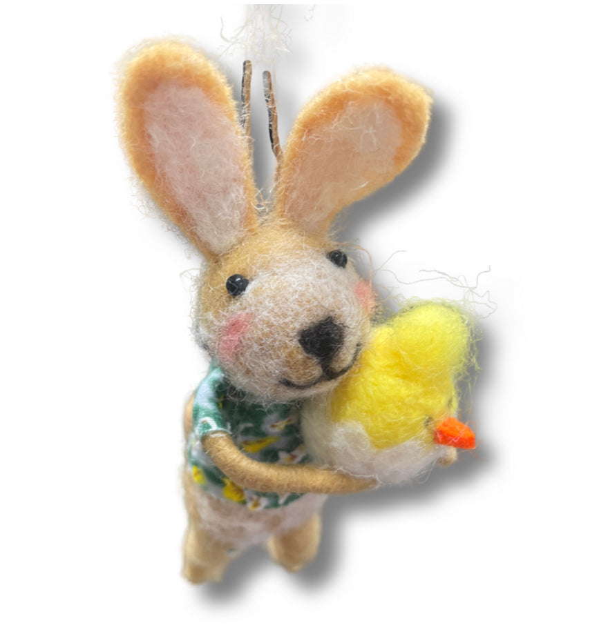 Clifford rabbit & his chick, hanging felt Easter decoration by Shoeless Joe