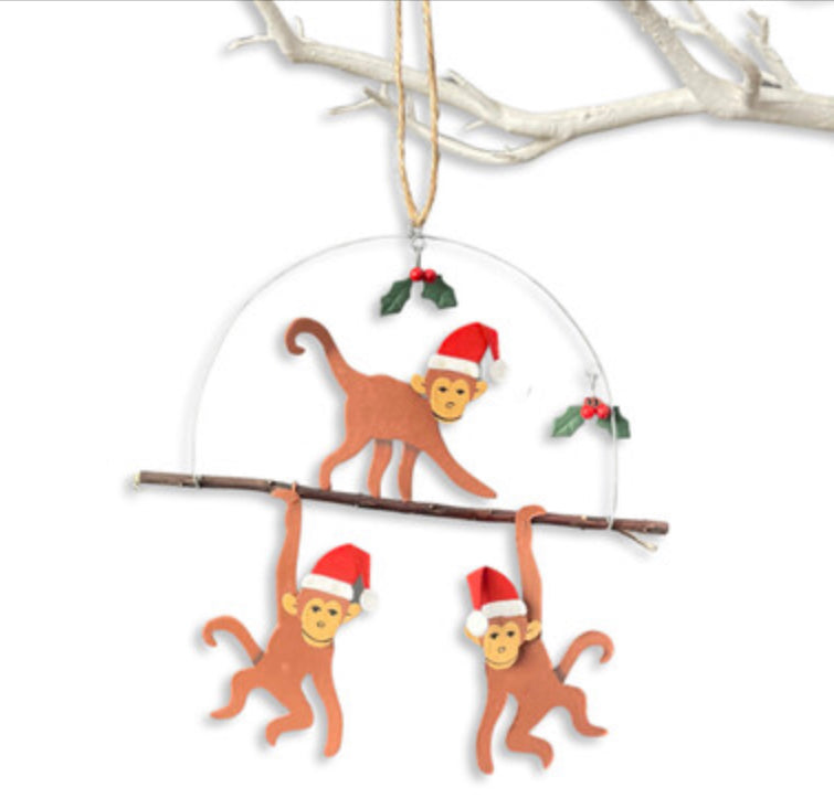 Three cheeky Christmas monkeys, hanging Christmas decoration by Shoeless Joe
